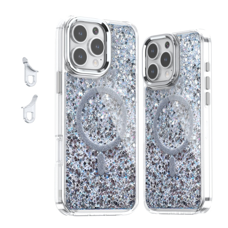 Funda de Teléfono TPU Magnética Magsafe con Purpurina Epoxi para iPhone 16 Pro Max (Blanca)