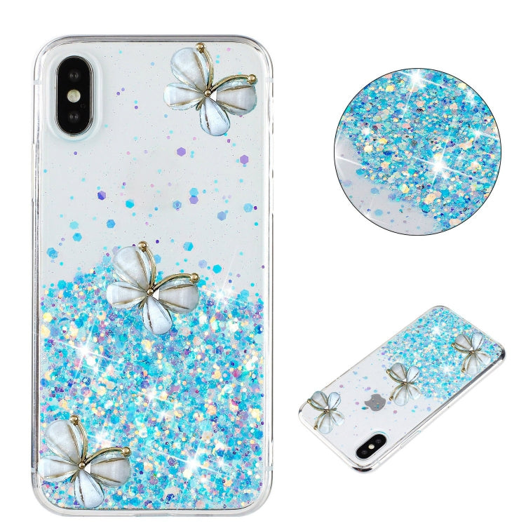 Funda TPU para iPhone Xs Max con Diseño de Mariposas y Estrellas Brillantes (Azul)