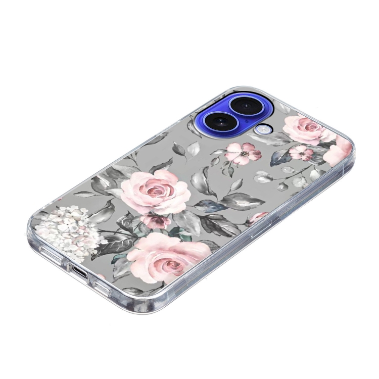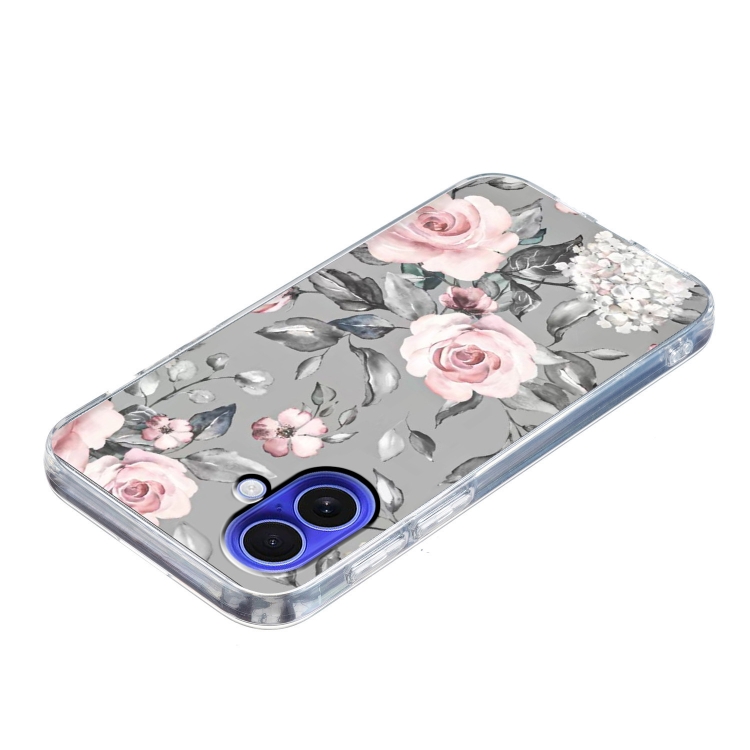 Funda de TPU para iPhone 16 Estampado Pintura Colorida (Flores en Gris)