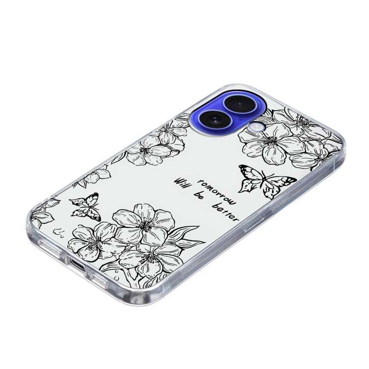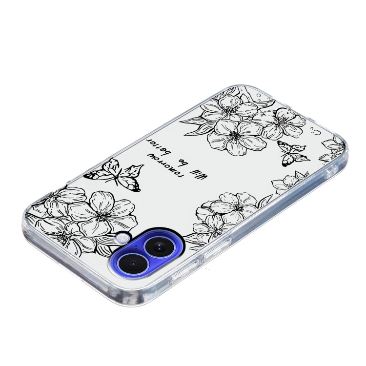 Funda TPU iPhone 16 Patrón Pintura Colorida Mariposa y Flor