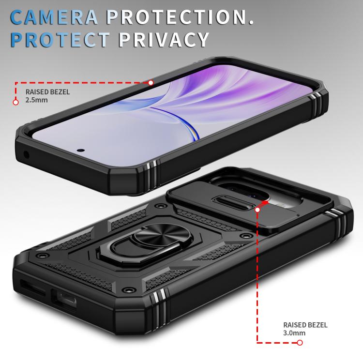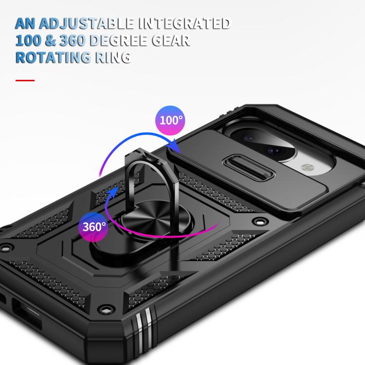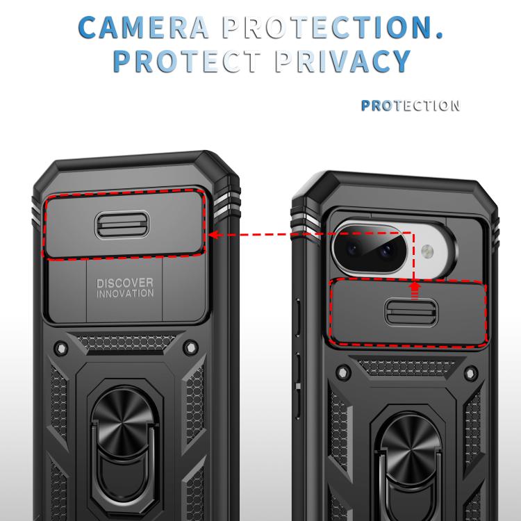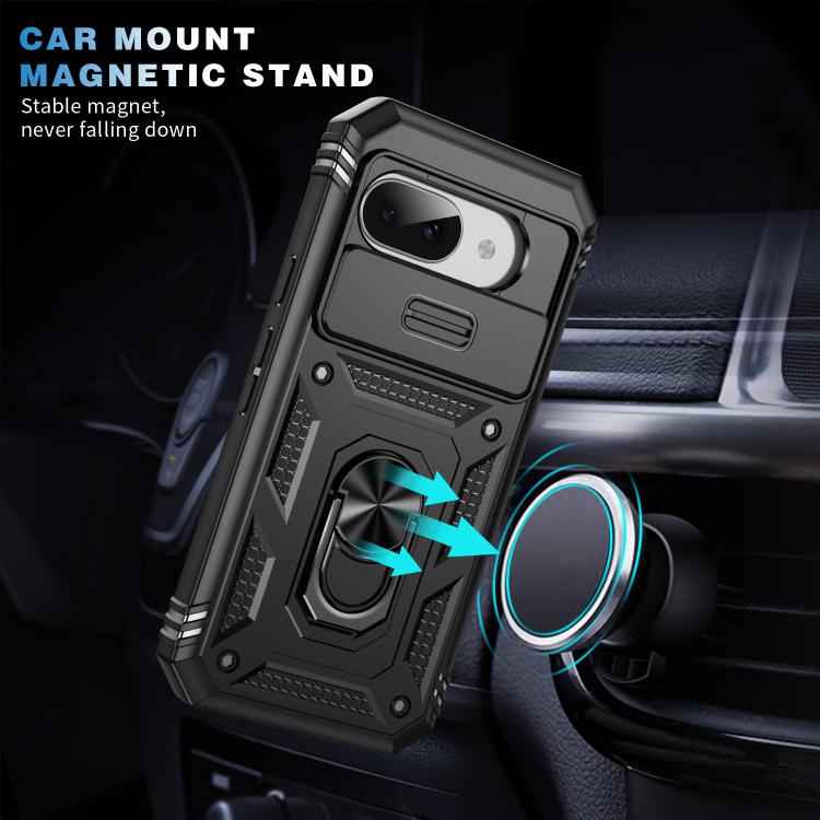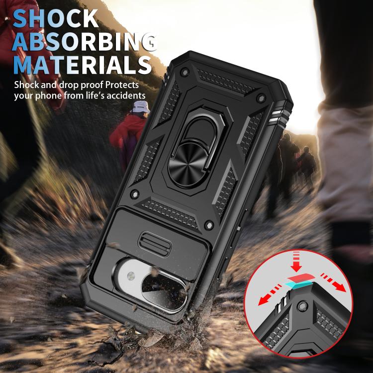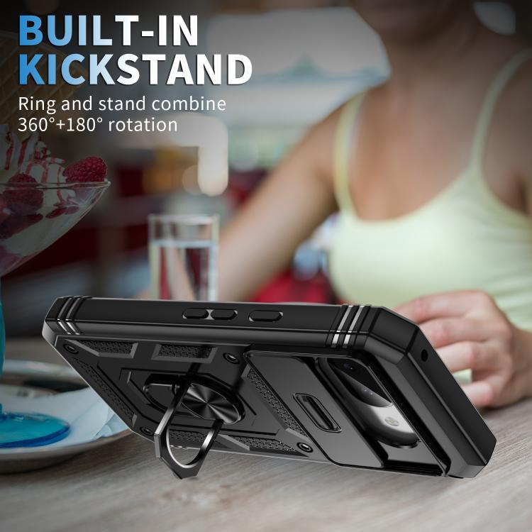 Funda TPU + PC con Soporte Deslizante para Google Pixel 9A (Negro)
