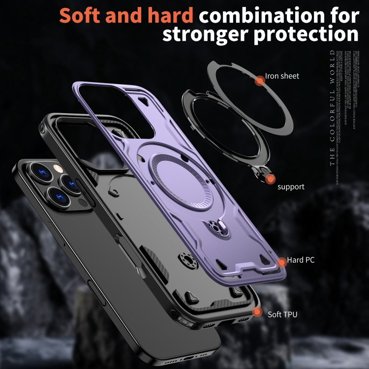 Funda híbrida TPU con soporte Magsafe para iPhone 16 Pro (Morada)