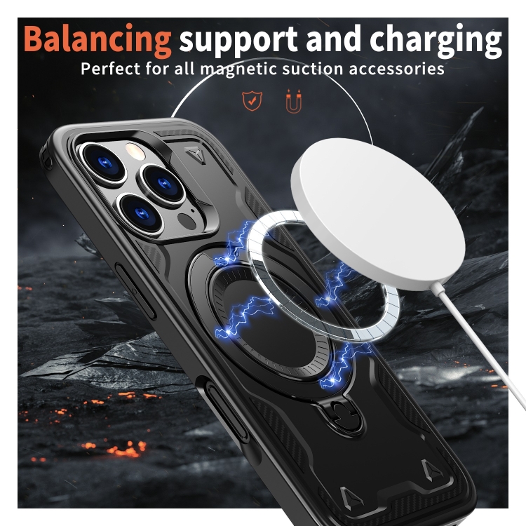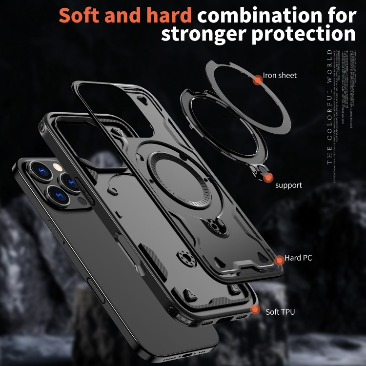 Funda híbrida TPU con soporte Magsafe para iPhone 16 Pro (Negra)