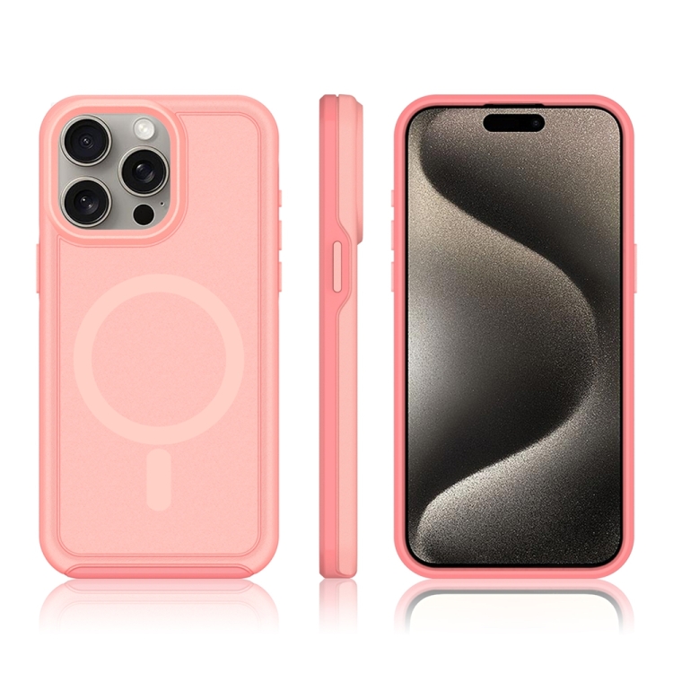 Funda híbrida TPU y PC iPhone 15 Pro Max protección Magsafe a prueba de golpes (Rosa Claro y Rojo Coral)