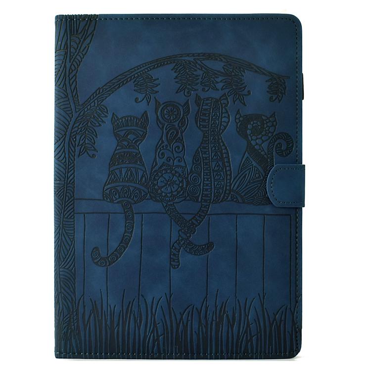 Funda inteligente de cuero con relieve de gatos para Samsung Galaxy Tab S10 FE+ (azul oscuro)