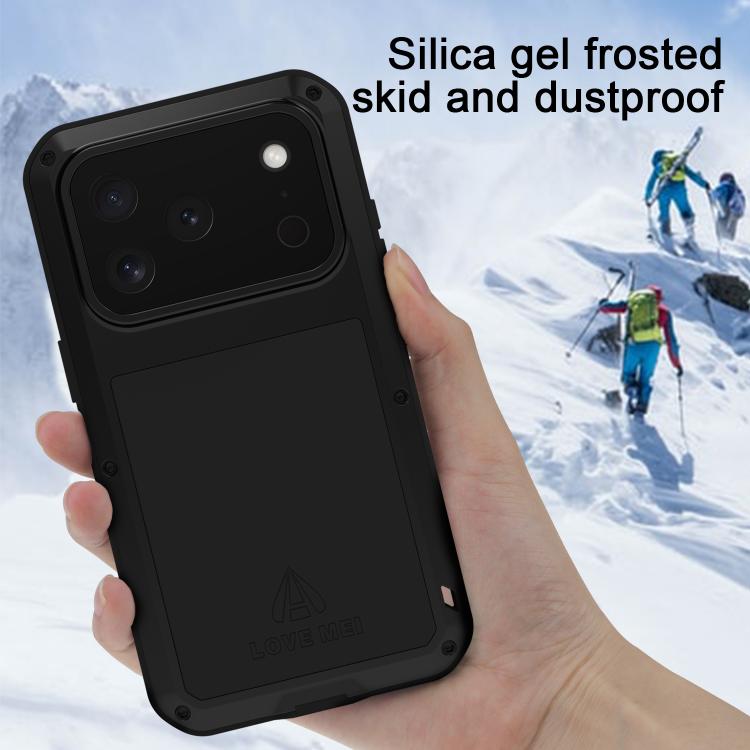 Funda Love Mei de metal resistente a golpes, impermeable y antipolvo para iPhone 17 Pro (negra)