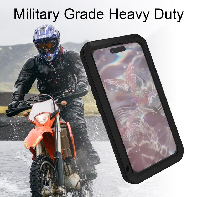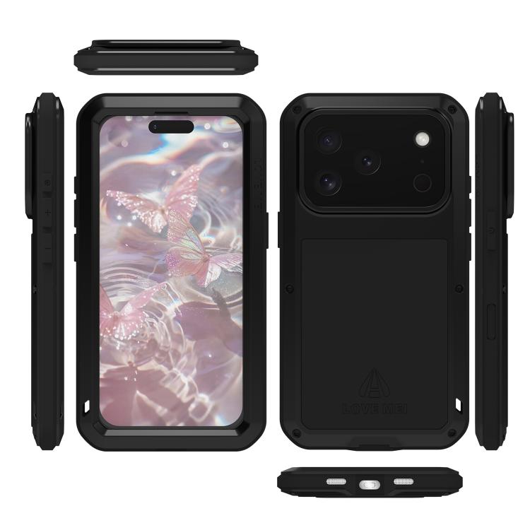 Funda Love Mei de metal resistente a golpes, impermeable y antipolvo para iPhone 17 Pro (plateada)