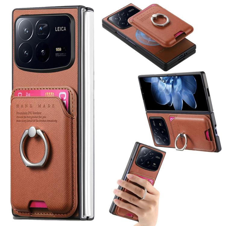 Funda magnética para Xiaomi Mix Fold 4, de tela sarga, con anillo para tarjetas (marrón)