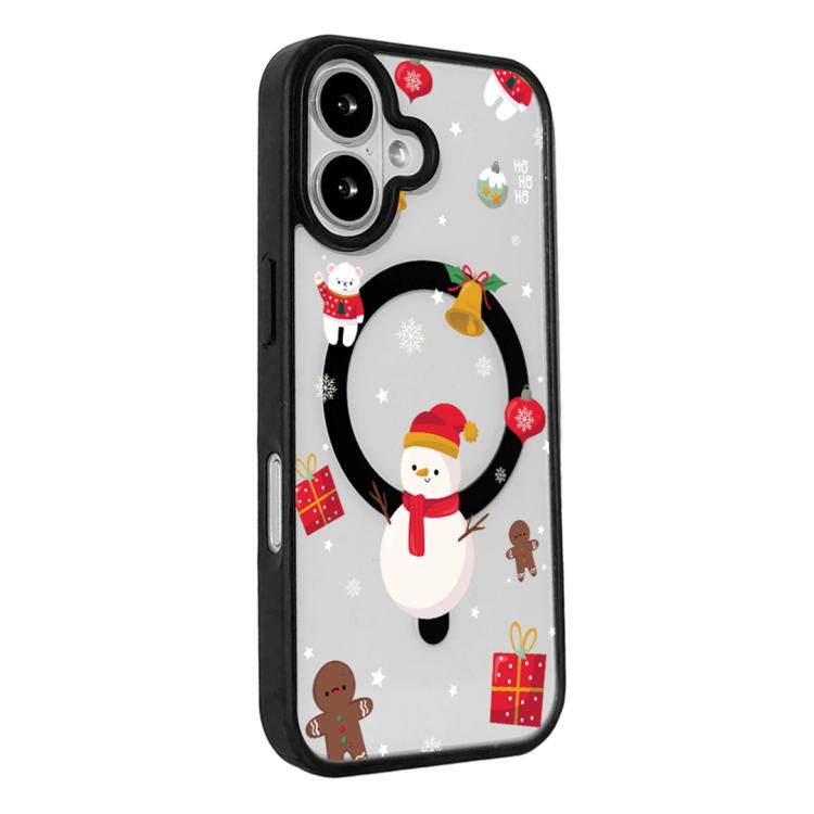 Funda magnética resistente con borde negro pintado para iPhone 17 de la serie navideña (Oso polar y muñeco de nieve)
