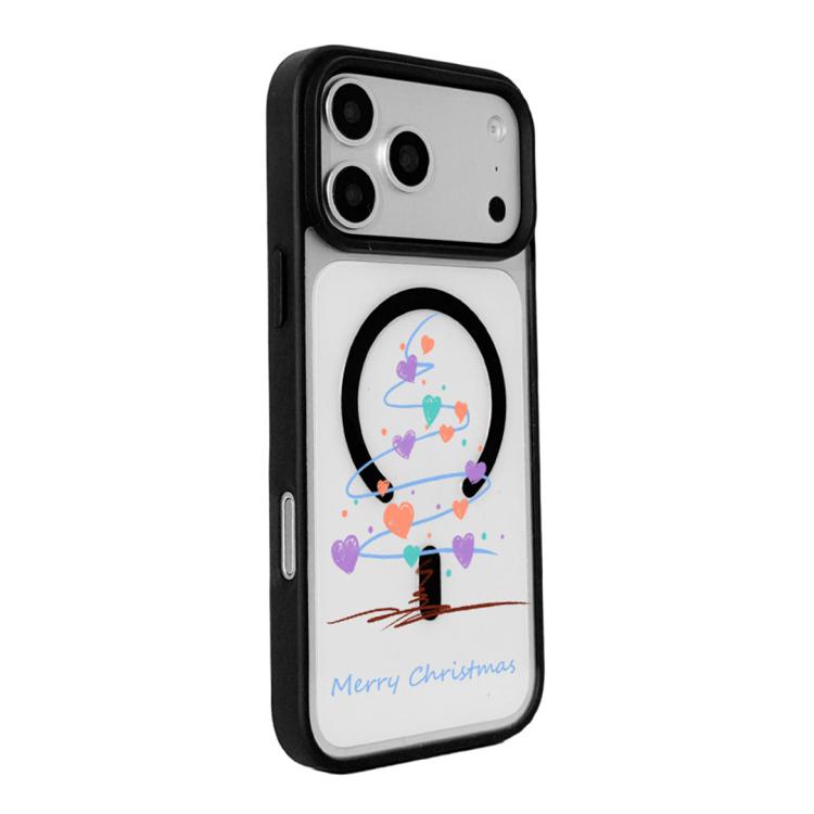 Funda magnética resistente con borde negro pintado para iPhone 17 Pro de la serie navideña (árbol de Navidad en forma de corazón)