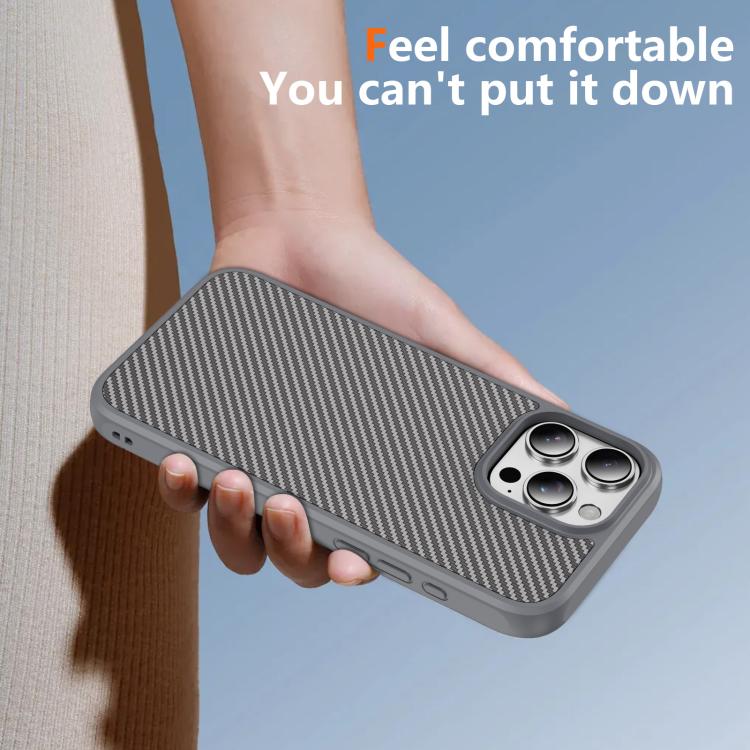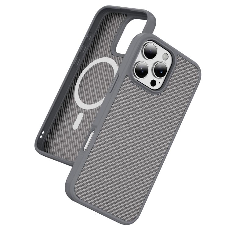 Funda MagSafe con textura de fibra de carbono y tacto suave para iPhone 16 Pro Max (gris)