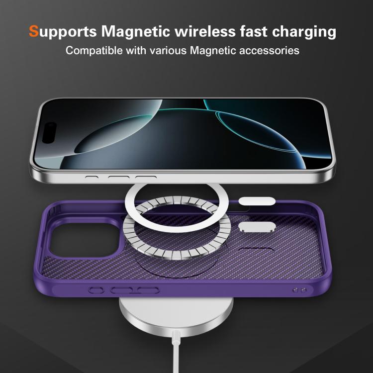 Funda MagSafe con textura de fibra de carbono y tacto suave para iPhone 16 Pro Max (morado)
