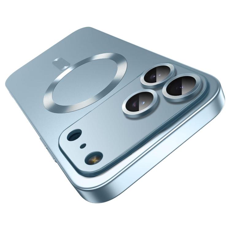 Funda MagSafe de TPU metálico ultradelgada para iPhone 17 Pro Max con protector de lente (Azul Sierra)