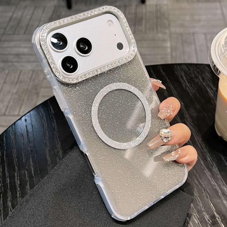 Funda MagSafe semitransparente con purpurina y bordes redondeados para iPhone 17 Pro (negra)