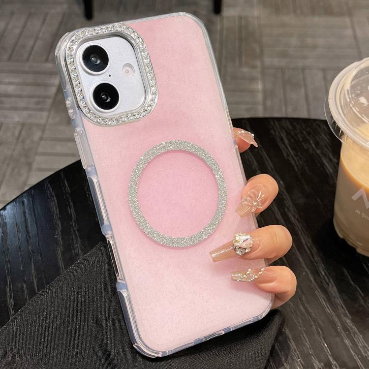 Funda MagSafe semitransparente con purpurina y bordes redondeados para iPhone 17 (rosa)