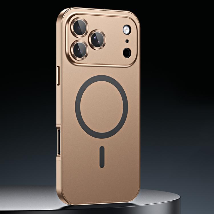 Funda metálica magnética MagSafe con hebilla de resorte para iPhone 17 Pro Max (dorado desierto)