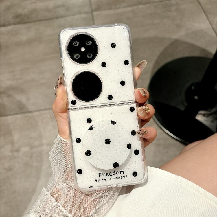 Funda para Huawei P50 Pocket con diseño de puntos brillantes y soporte (blanca)