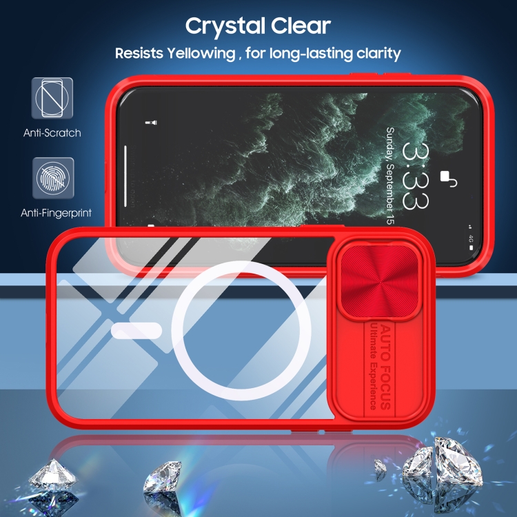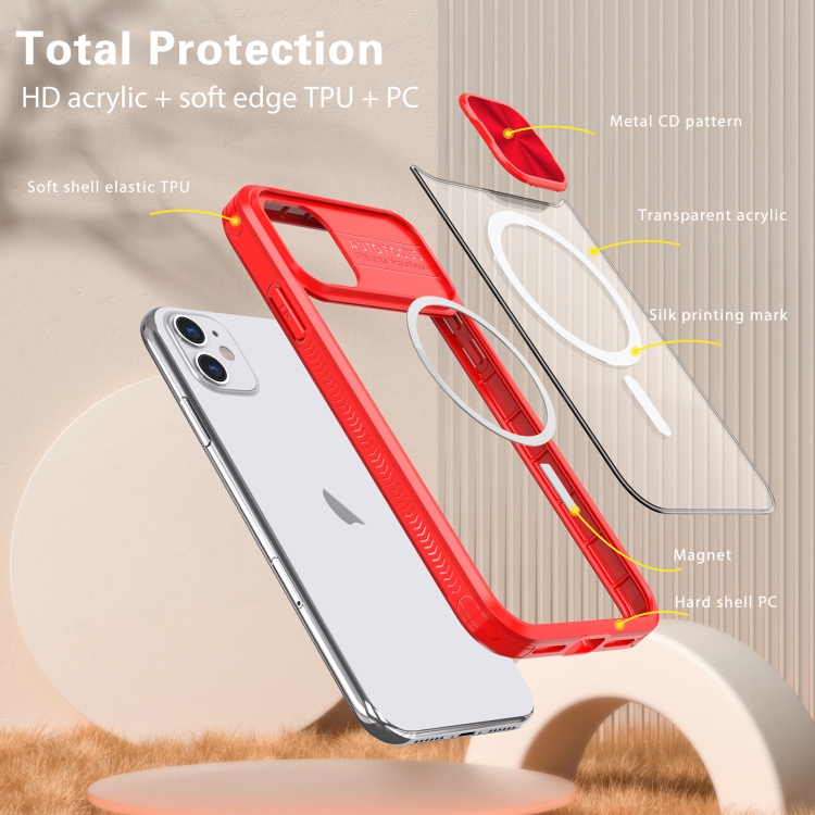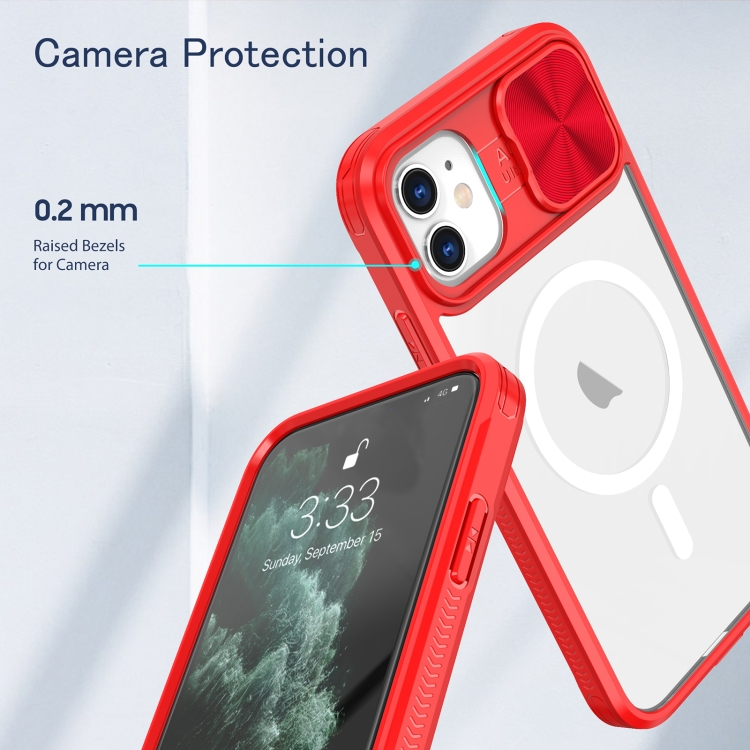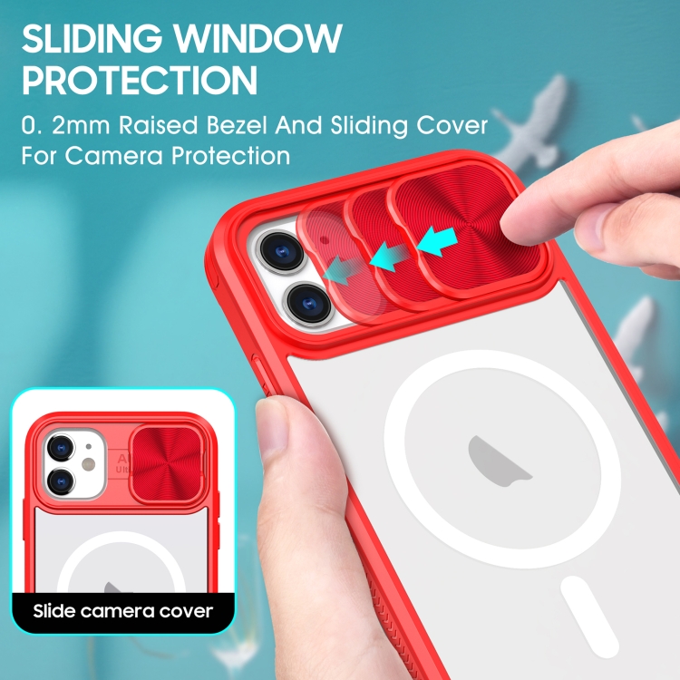 Funda para iPhone 11 con Cubierta Deslizante Acrílico Transparente PC TPU Magsafe (Rojo)