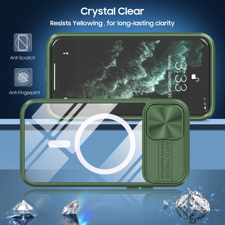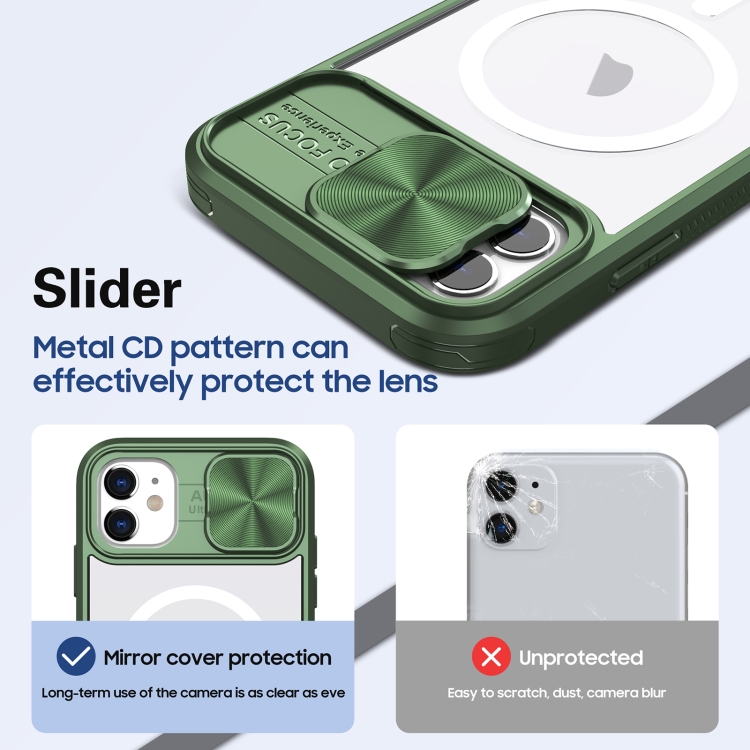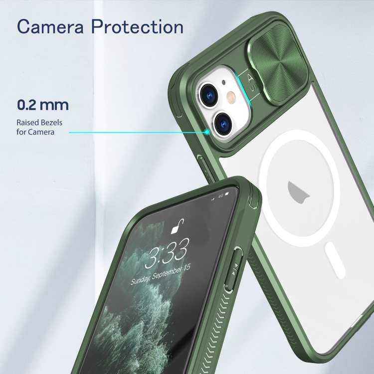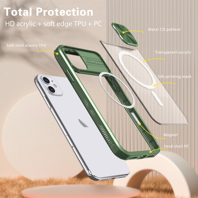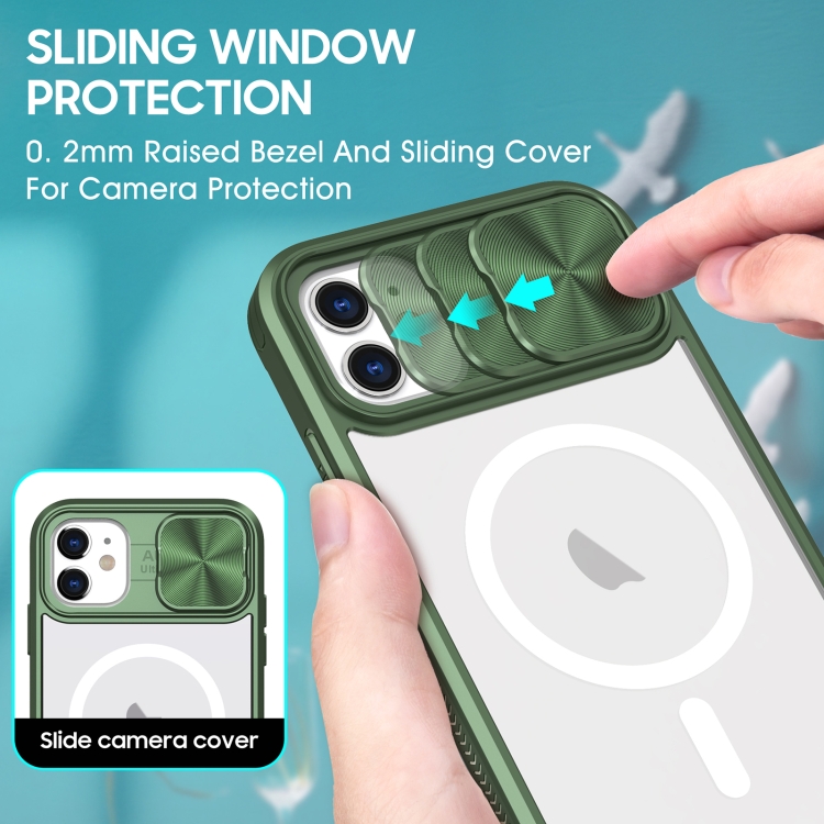 Funda para iPhone 11 Cubierta Deslizante Acrílico Transparente PC TPU Magsafe (Verde Oliva)