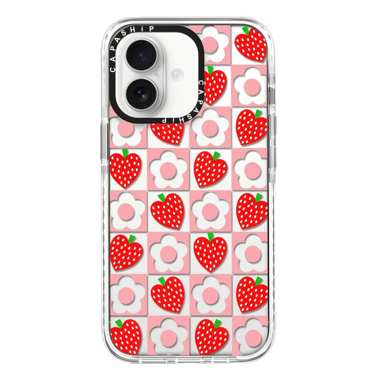 Funda para iPhone 16 Diseño Ilustración Simple Cobertura Total (Flor de Fresa con Amor)