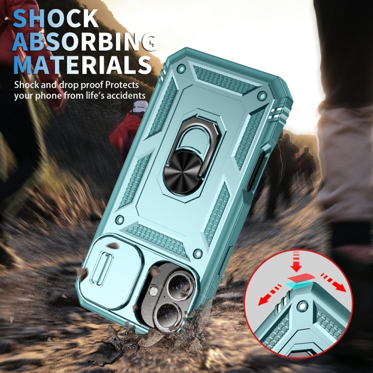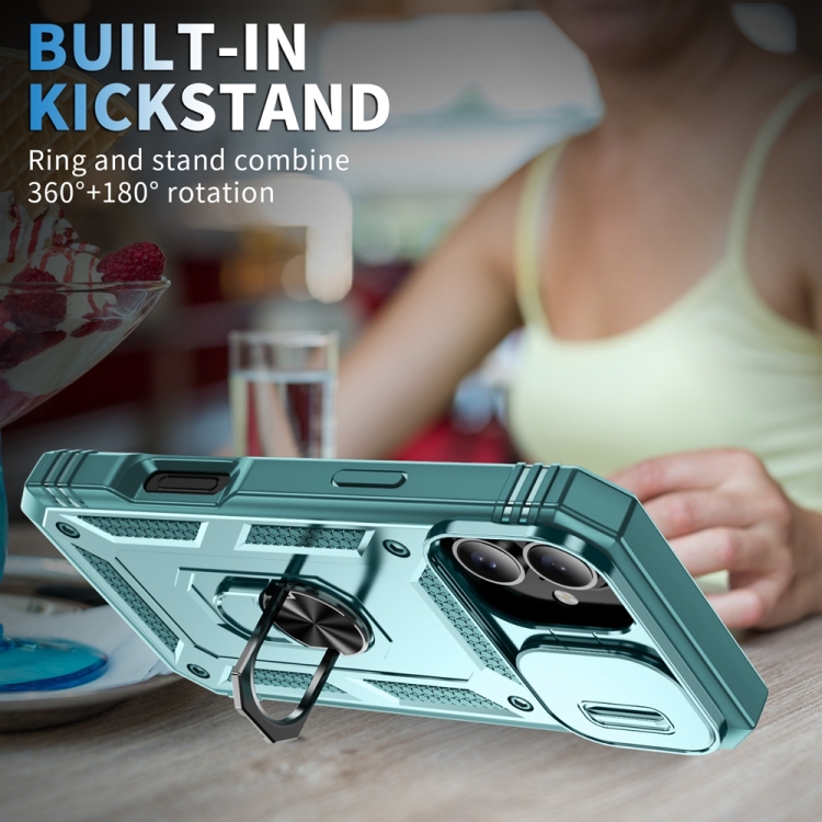 Funda para iPhone 16 soporte deslizante TPU y PC (Verde)