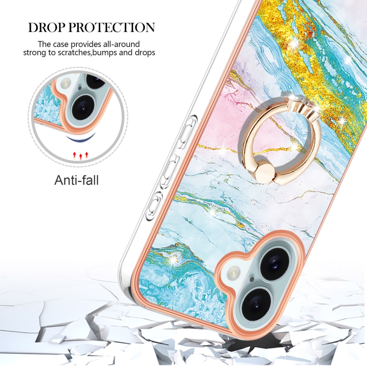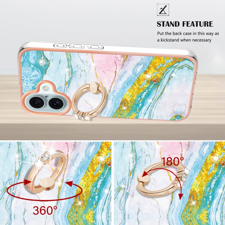 Funda para iPhone 16 Soporte para Anillo Revestimiento Mármol Imd TPU (Verde)