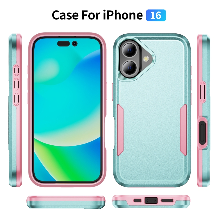 Funda para iPhone 16 Pioneer Armor Policarbonato Resistente y TPU (Verde y Rosa)