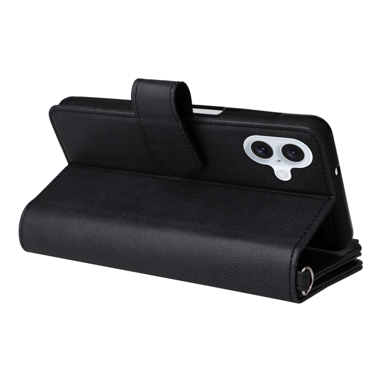Funda para iPhone 16 Plus 2 en 1 con Cremallera a Prueba de Golpes (Negro)