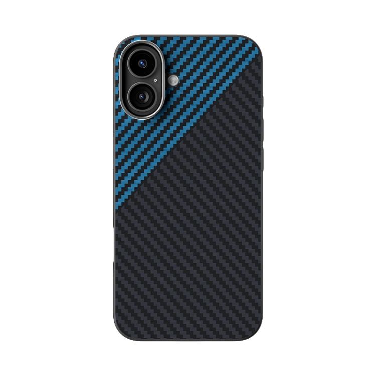 Funda para iPhone 16 Plus Abeel C Carbon Fiber Series 6D Micro Relief Magsafe (Negra y Azul)