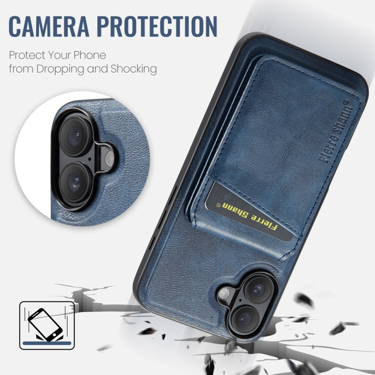 Funda para iPhone 16 Plus Fierre Shann con Tarjetero Magnético de Piel de Vaca (Azul)