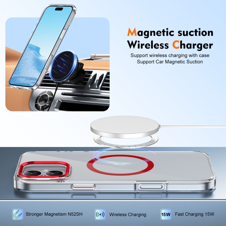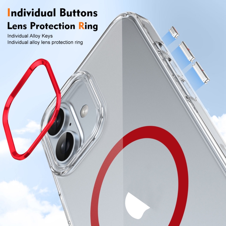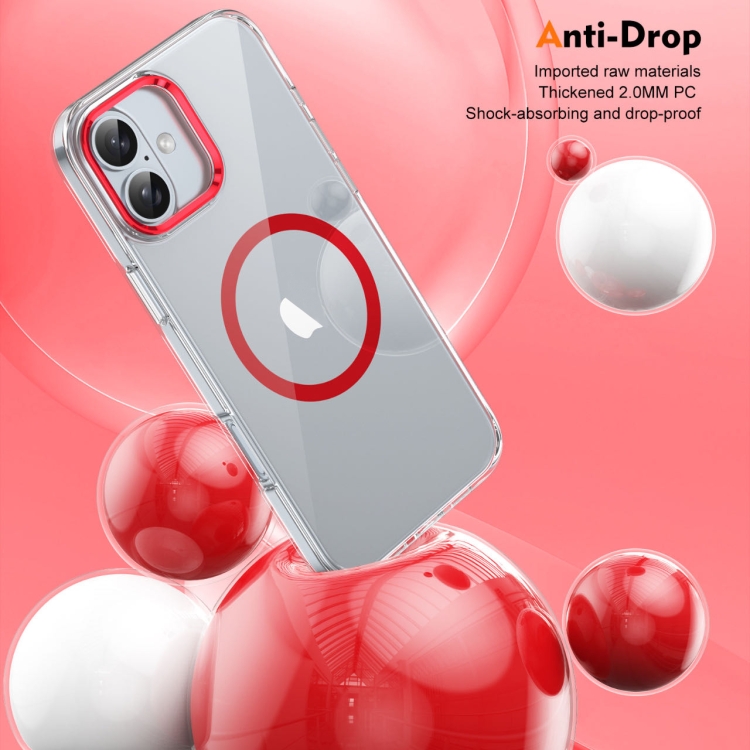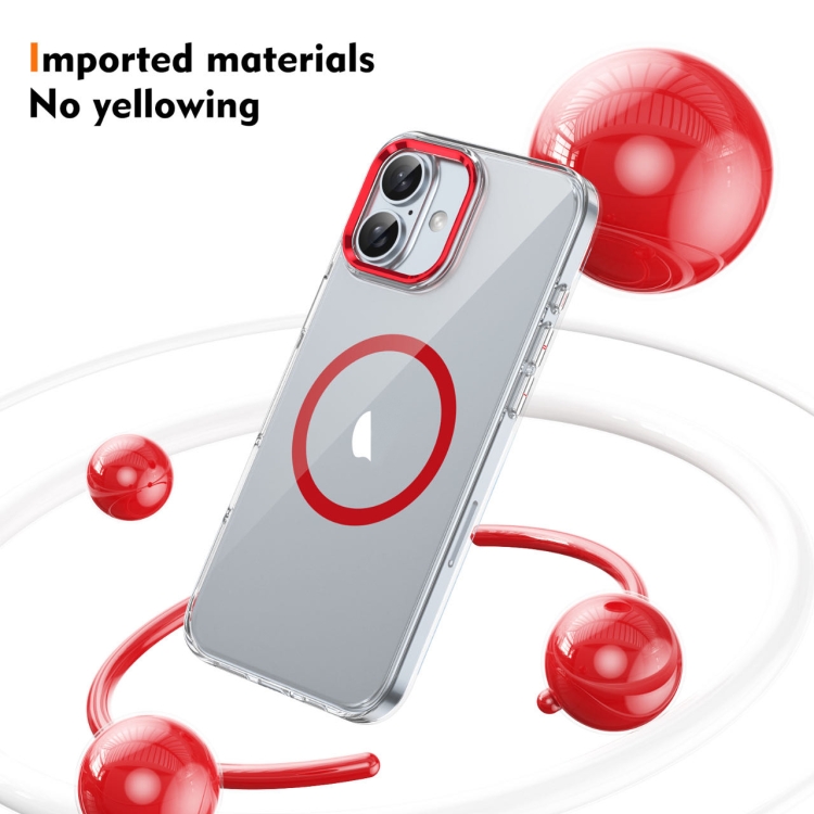 Funda para iPhone 16 Plus Ice Feel HD Transparente Cobertura Total PC Magsafe (Roja)