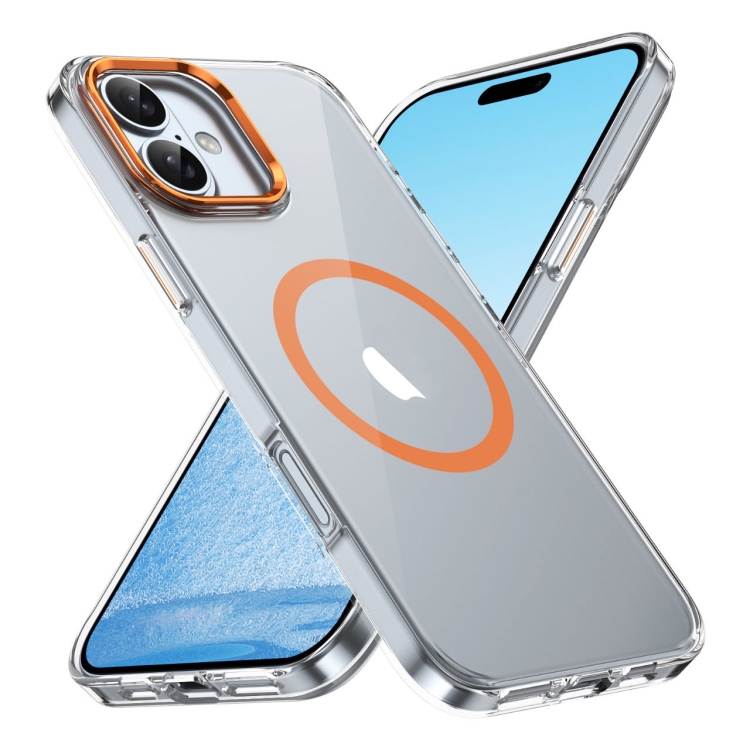 Funda para iPhone 16 Plus Ice Feel HD Transparente Magsafe PC de Cobertura Total (Naranja)