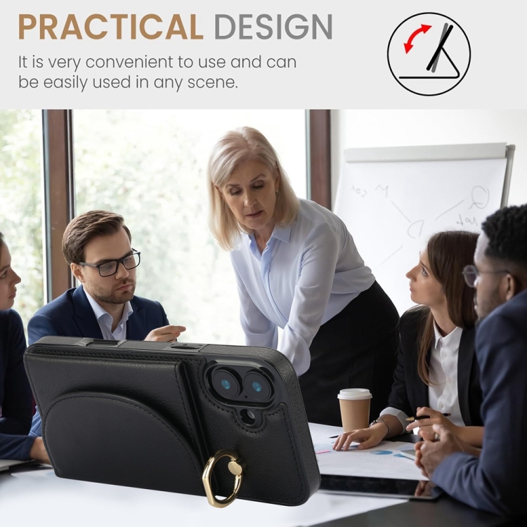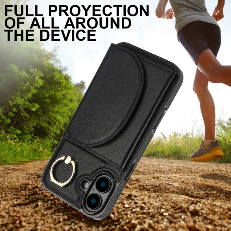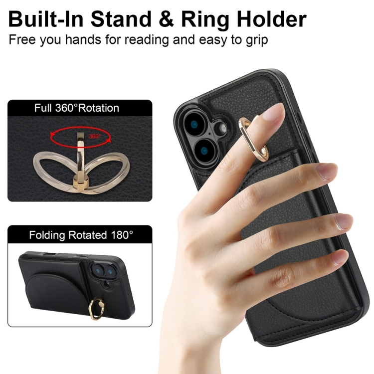 Funda para iPhone 16 Plus Ym007 con Tarjetero y Anillo Tacto Suave (Negra)
