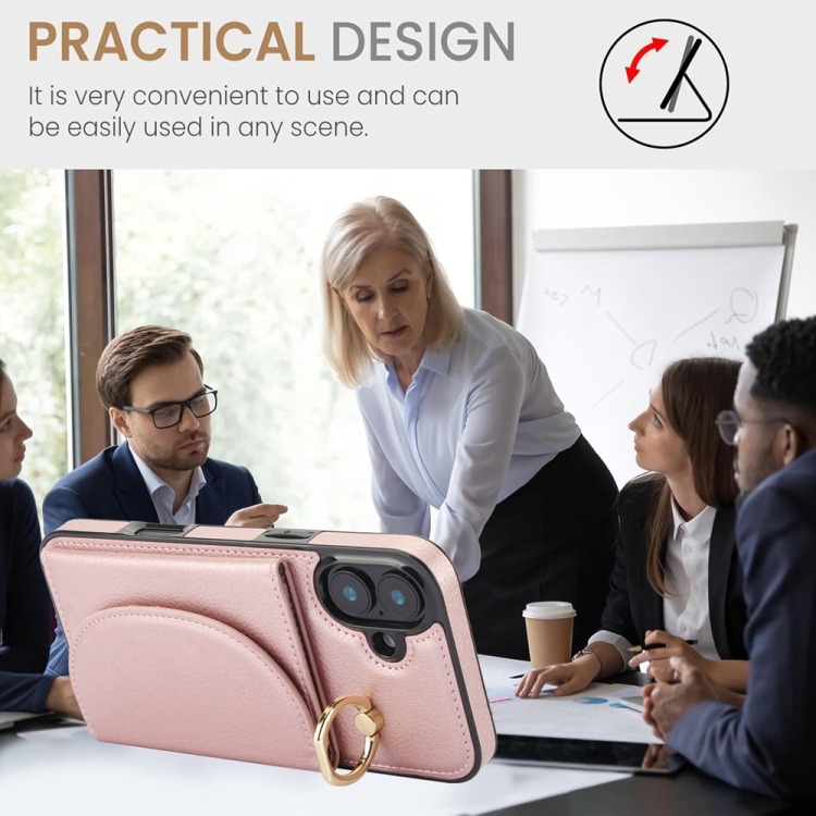 Funda para iPhone 16 Plus Ym007 con Tarjetero y Anillo Tacto Suave (Oro Rosa)