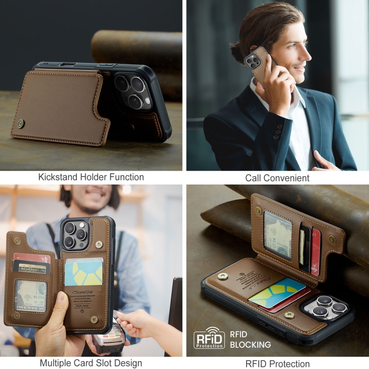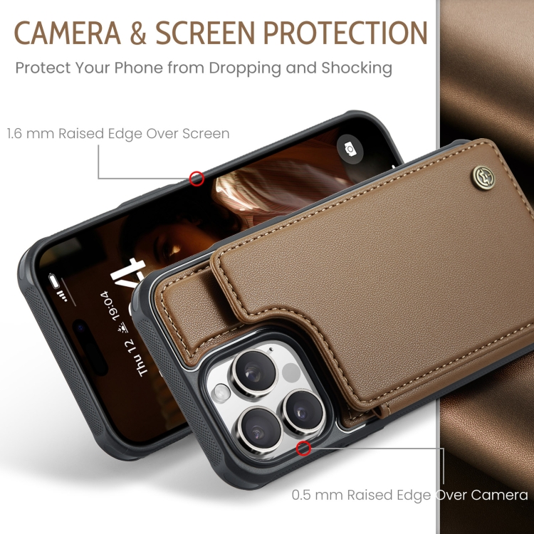 Funda para iPhone 16 Pro Caseme C22 con Ranuras para Tarjetas y Protección Antirrobo Rfid (Marrón)