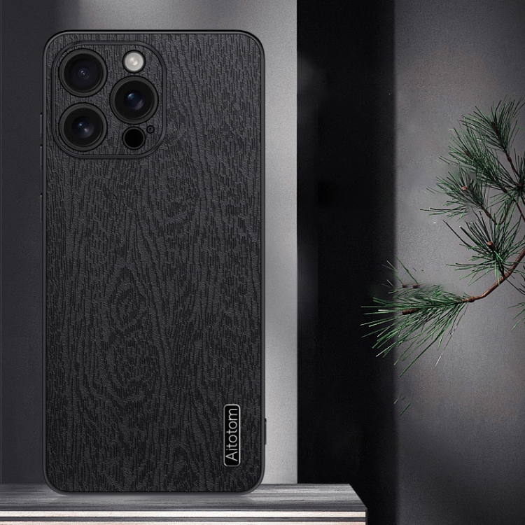Funda para iPhone 16 Pro Piel de Corteza de Árbol a Prueba de Golpes (Gris)