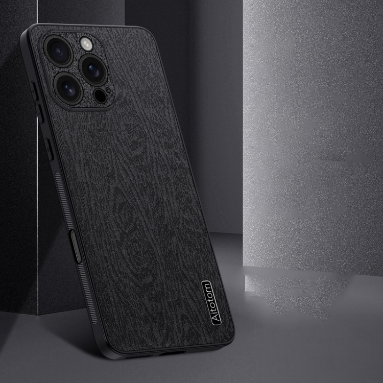 Funda para iPhone 16 Pro de Piel de Corteza de Árbol a Prueba de Golpes (Marrón)
