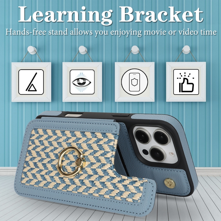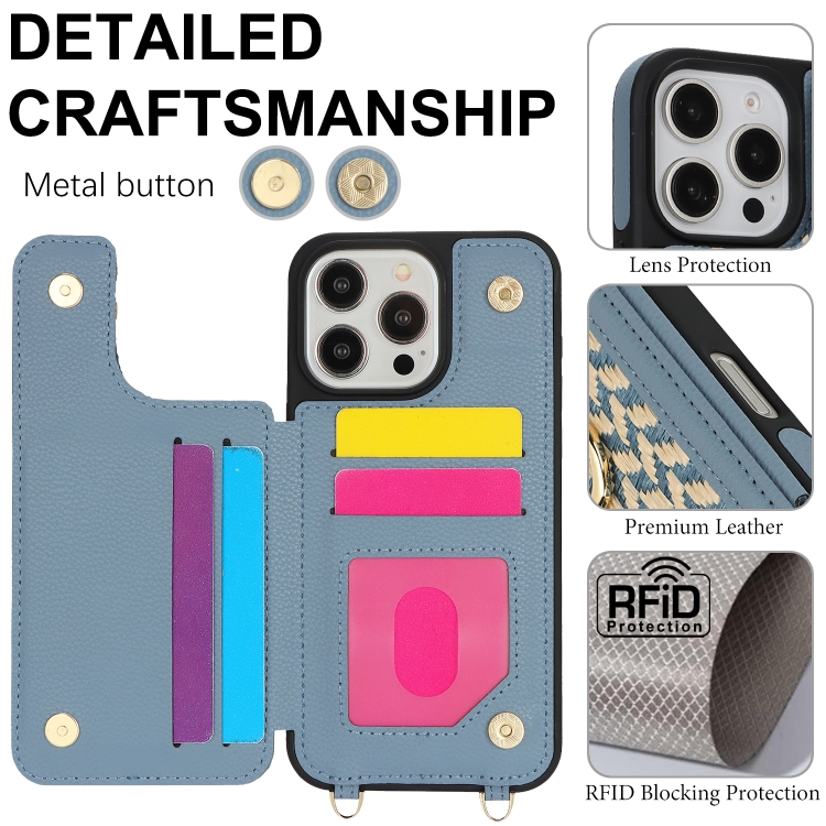 Funda para iPhone 16 Pro Max con Ranura para Tarjeta Doble Hebilla Correa Cruzada (Azul)