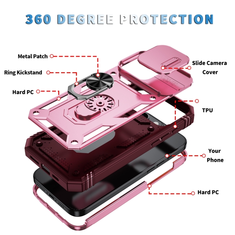 Funda para iPhone 16 Pro Max TPU + PC con Soporte Deslizante (Rosa y Rojo Rosa)