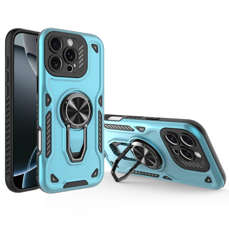 Funda para iPhone 16 Pro Max Soporte Giratorio Metal Carcasa Magnética TPU PC (Azul Brillante)