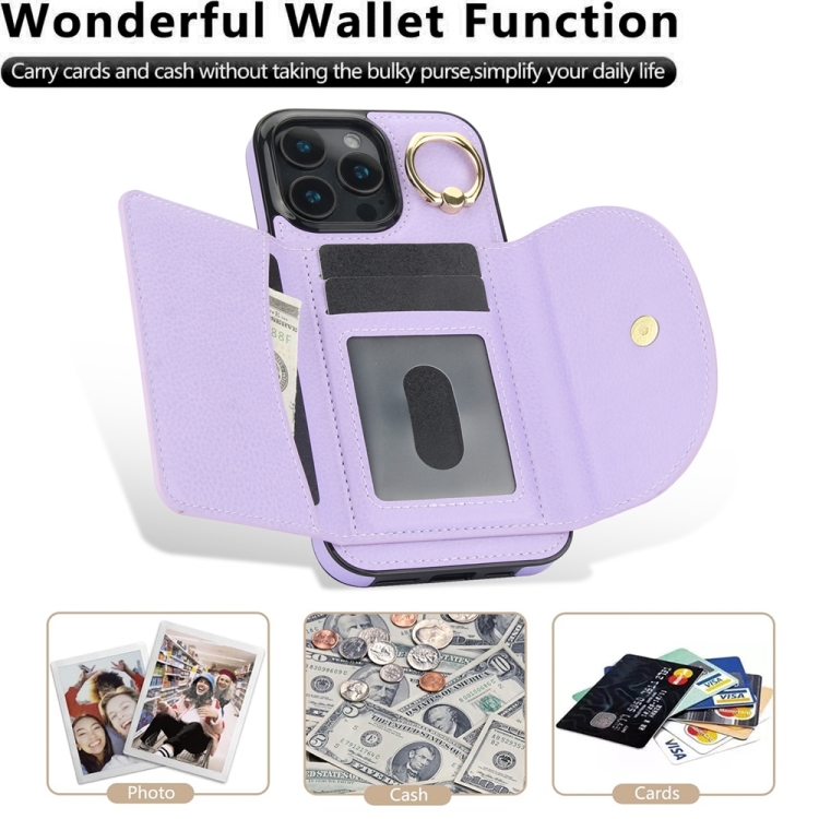 Funda para iPhone 16 Pro Ym007 con Tarjetero y Anillo Tacto Suave (Morado)