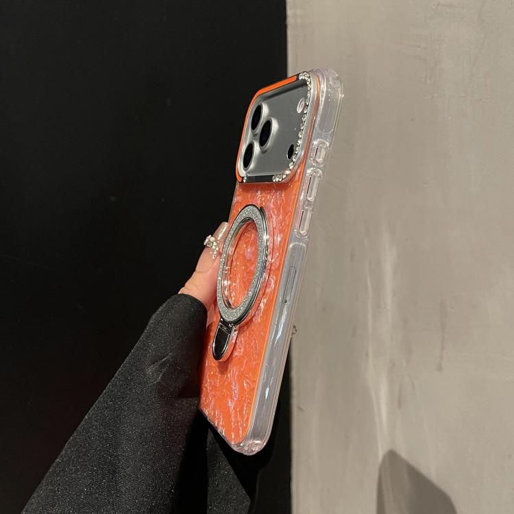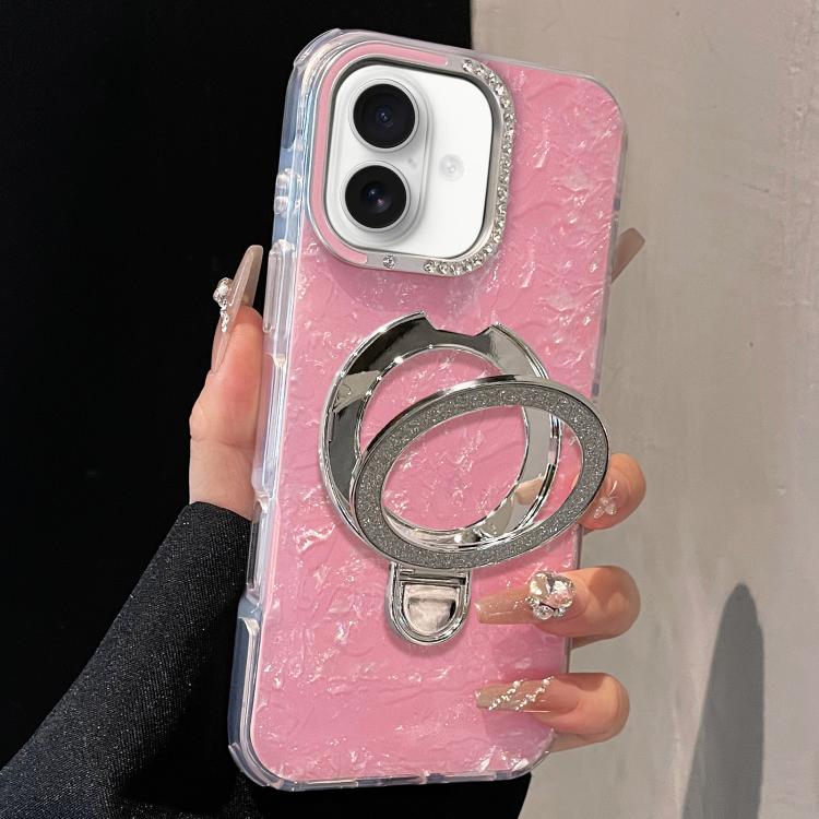 Funda para iPhone 17 con carcasa dorada y colorida, diseño estampado, TPU+IMD, con soporte magnético brillante (rosa).