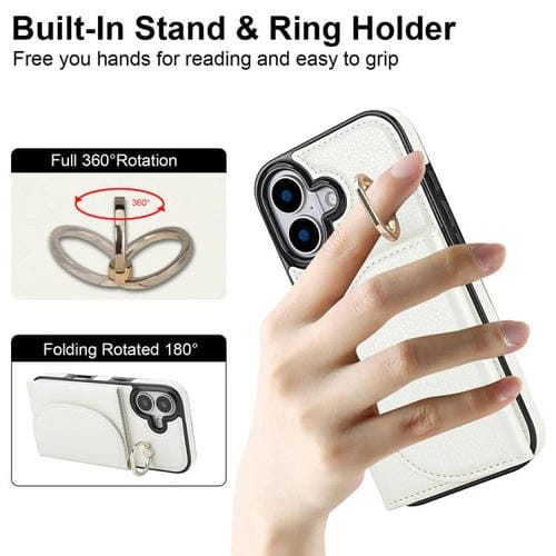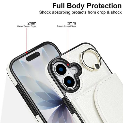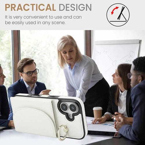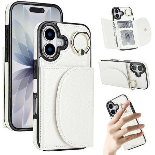 Funda para iPhone 17 con tarjetero y anillo, tacto suave (blanca)