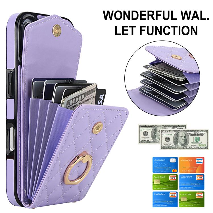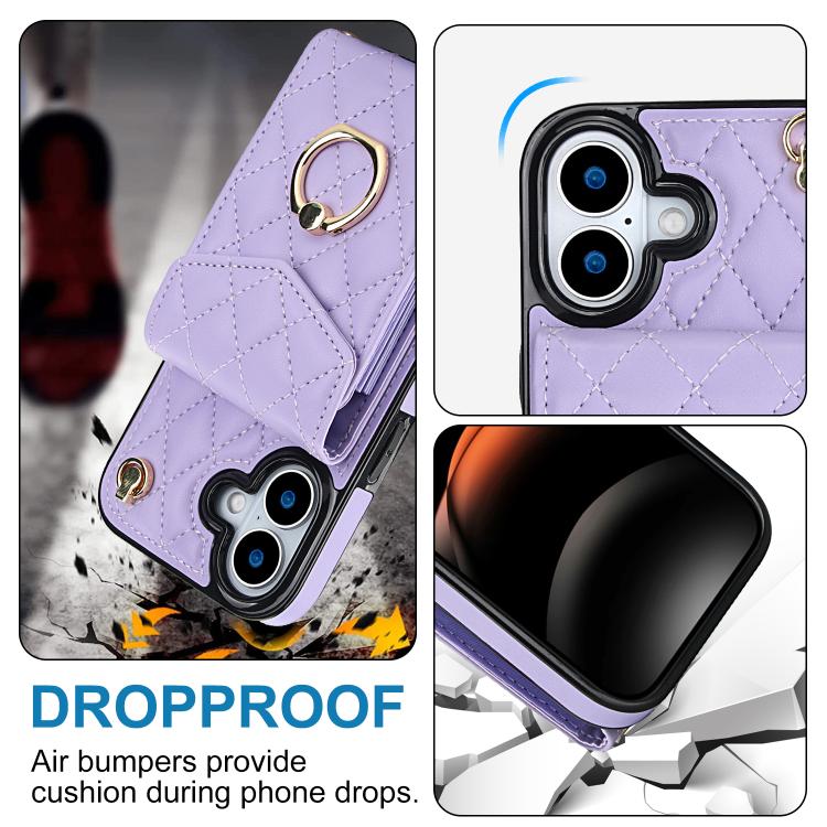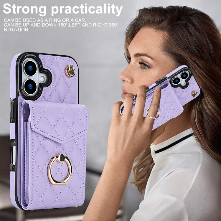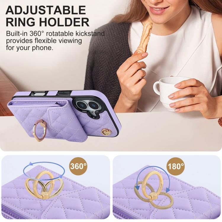 Funda para iPhone 17 con textura rómbica y cordón largo (morado claro)
