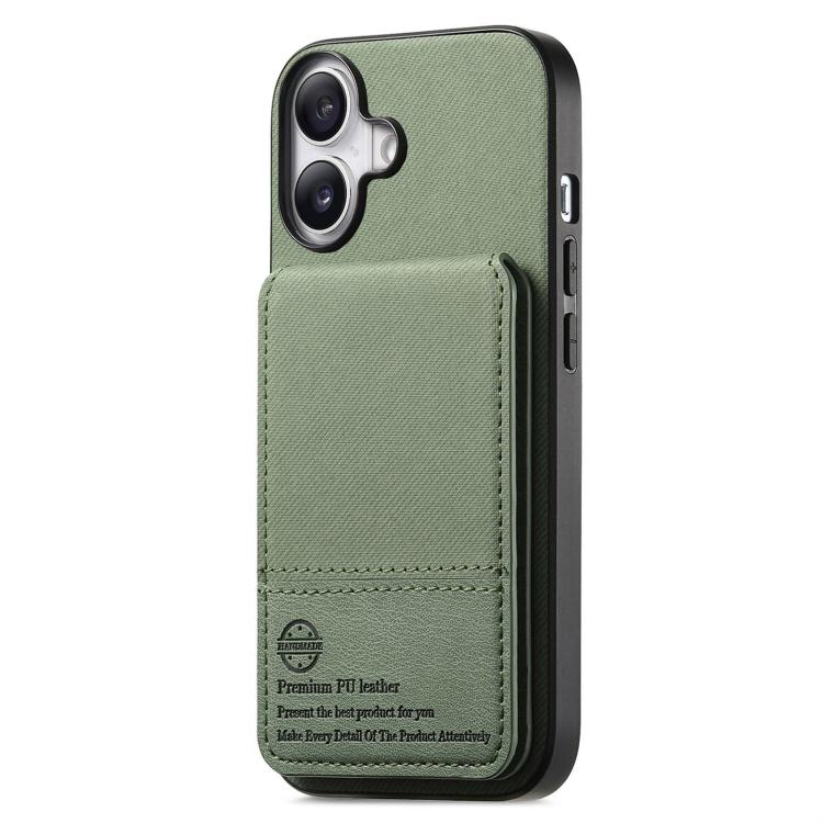Funda para iPhone 17 de piel y sarga con tapa vertical RFID para tarjetas (verde)