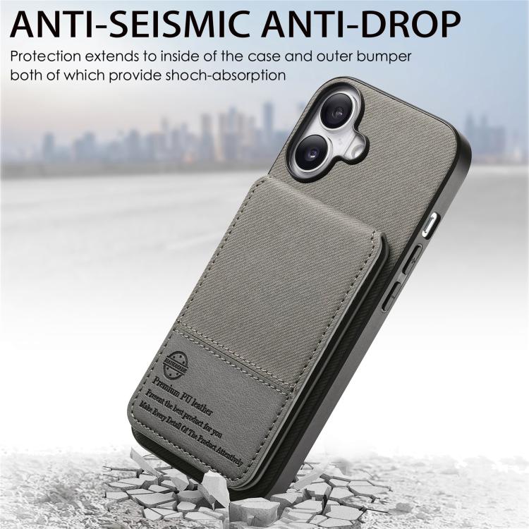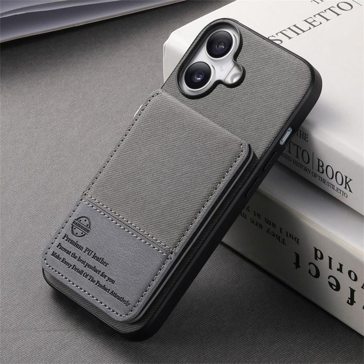 Funda para iPhone 17 de piel y sarga con tapa vertical RFID y tarjetero (gris)