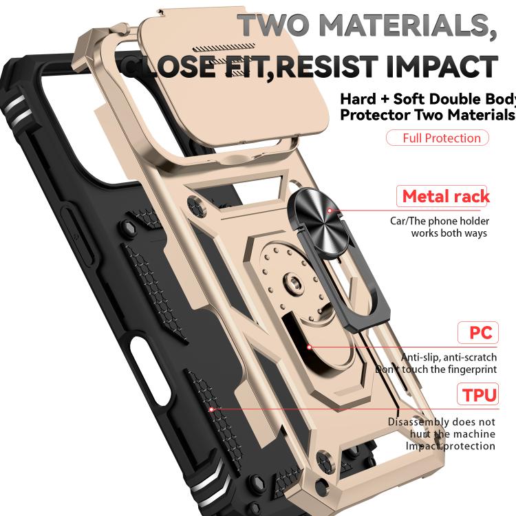 Funda para iPhone 17 Pro con soporte deslizante Camshield (dorada)