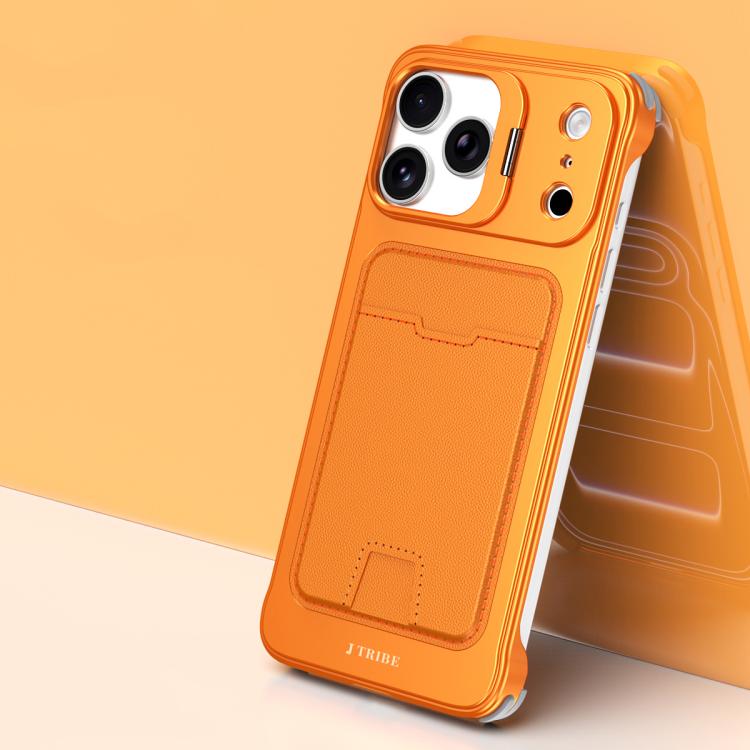 Funda para iPhone 17 Pro J TRIBE de metal sin marco con ranura para tarjeta y soporte para lente (naranja)