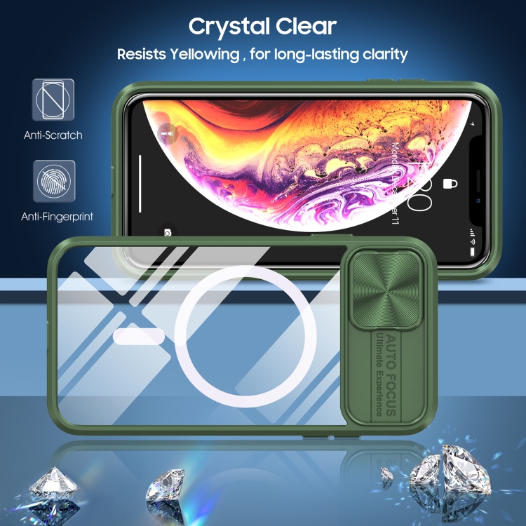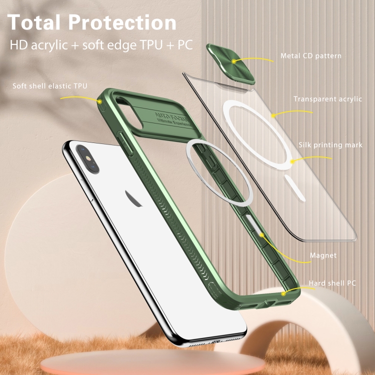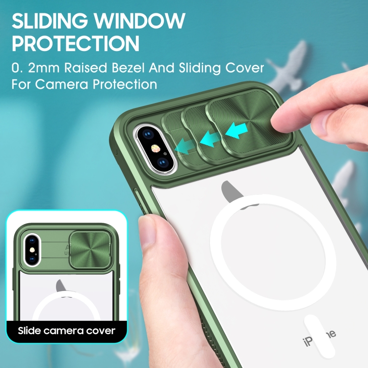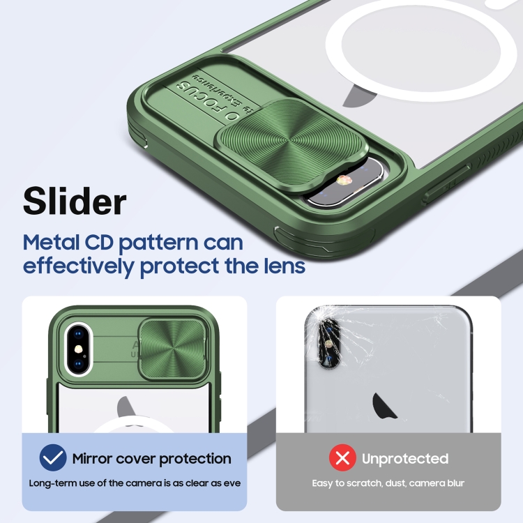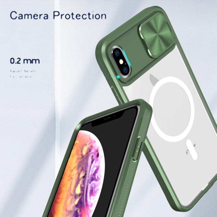 Funda para iPhone Xs Max Cobertura Total Cubierta Deslizante Lente Magsafe (Verde Oliva)