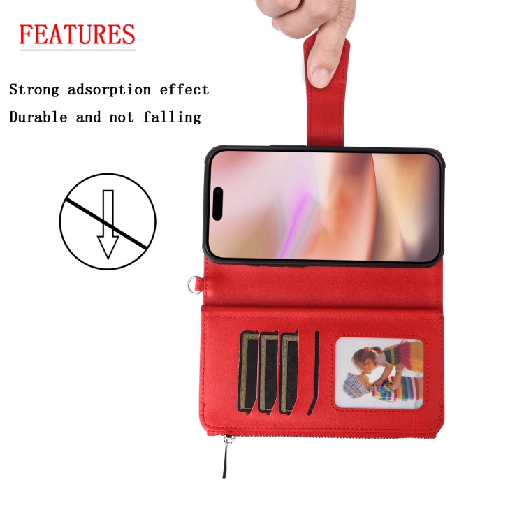 Funda para Teléfono 2 En 1 con Cremallera y Resistente a Los Golpes para iPhone 16 Plus (Rojo)